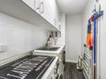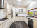 Modern kitchen featuring thick stone benchtops and ample cabinetry