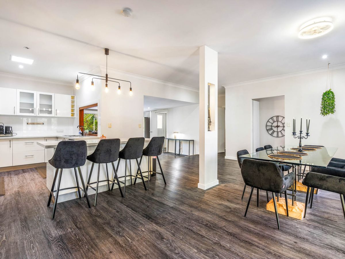 Positioned on a corner block in a quiet island setting, this beautifully renovated three-bedroom, two-bathroom Queenslander combines classic character with modern comfort. With water views, generous entertaining spaces, and a flexible layout, this home is ideal for relaxed coastal living.