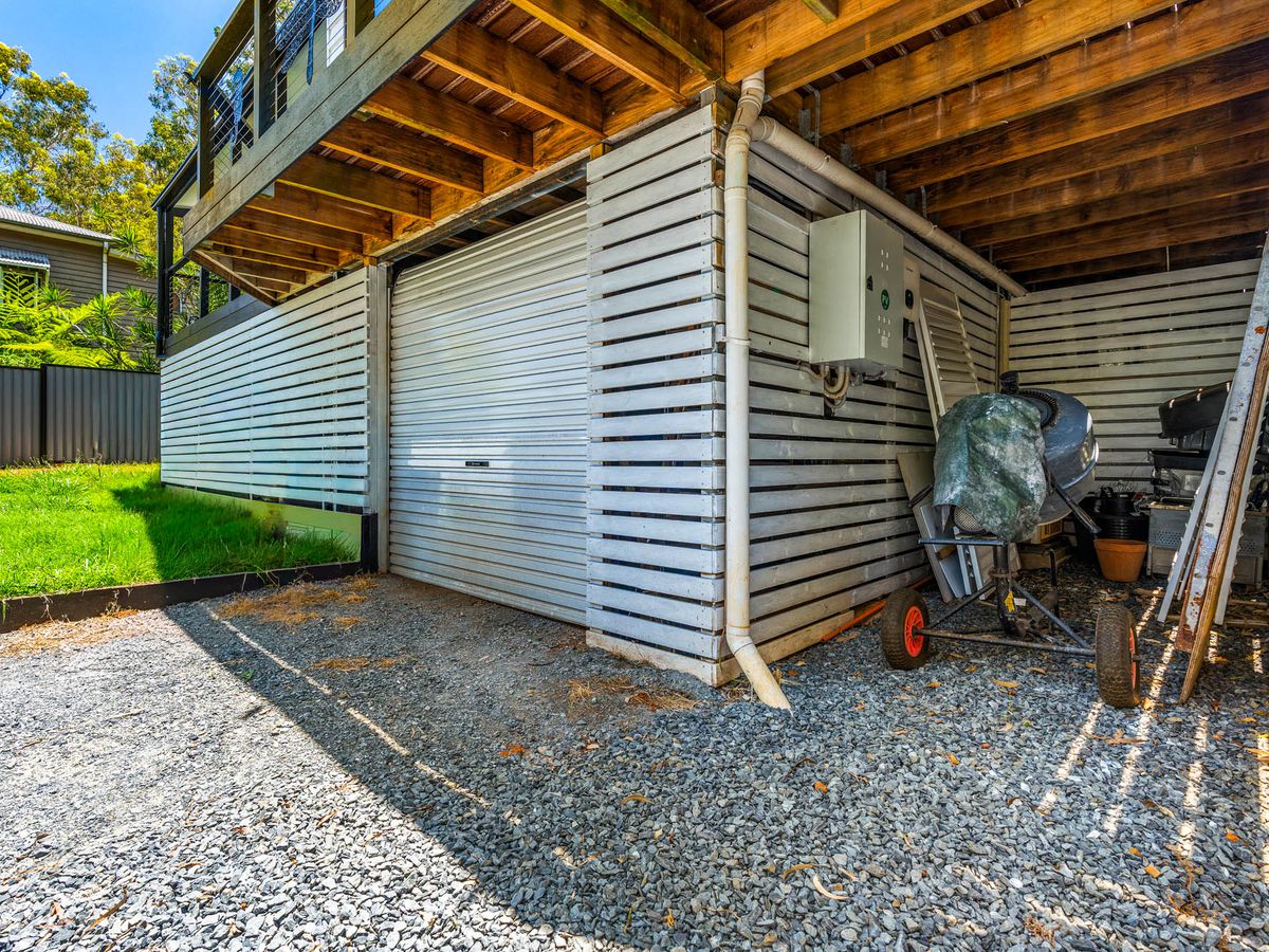 Extensive under-house storage suitable for tools or hobbies